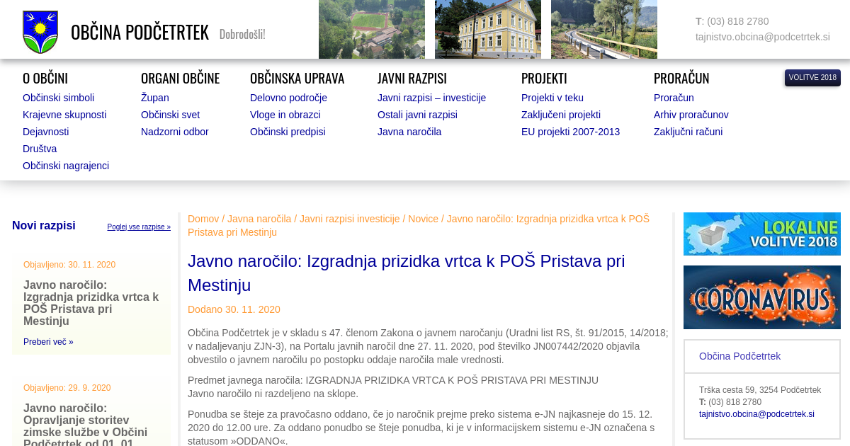 Javno naročilo: Izgradnja prizidka vrtca k POŠ Pristava pri Mestinju