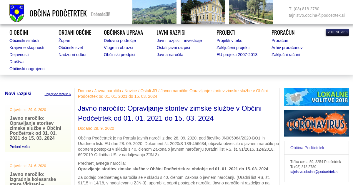 Javno naročilo: Opravljanje storitev zimske službe v Občini Podčetrtek od 01. 01. 2021 do 15. 03. 2024