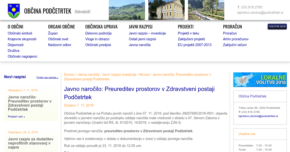 Javno naročilo: Preureditev prostorov v Zdravstveni postaji Podčetrtek