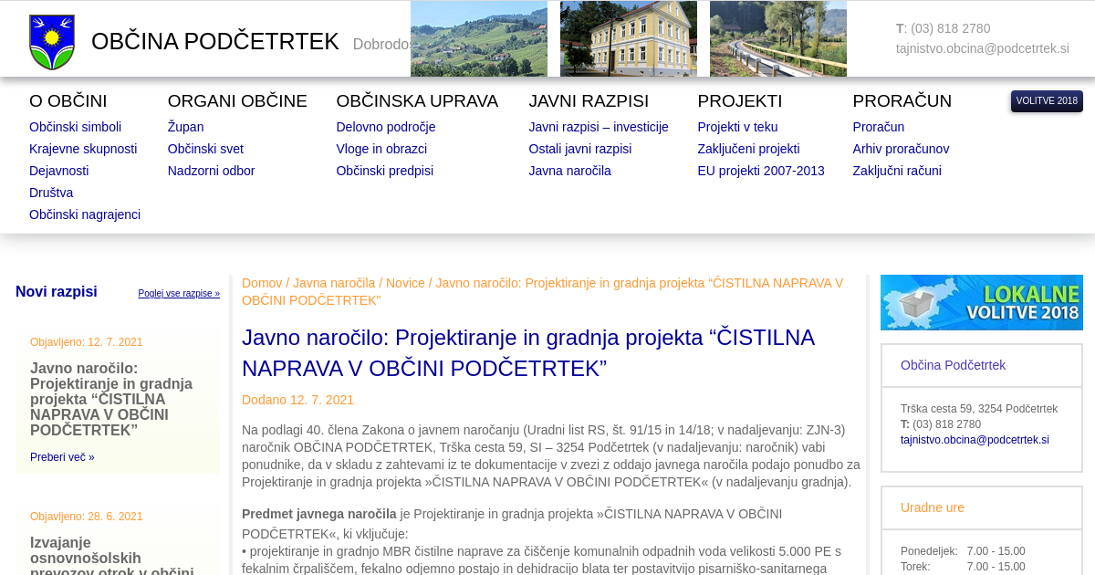Javno naročilo: Projektiranje in gradnja projekta “ČISTILNA NAPRAVA V OBČINI PODČETRTEK”