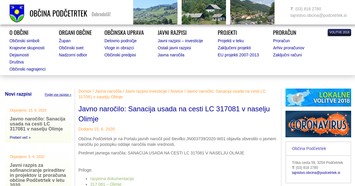 Javno naročilo: Sanacija usada na cesti LC 317081 v naselju Olimje