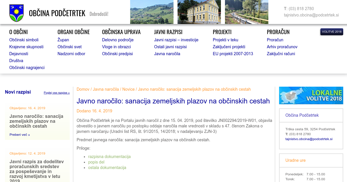 Javno naročilo: sanacija zemeljskih plazov na občinskih cestah