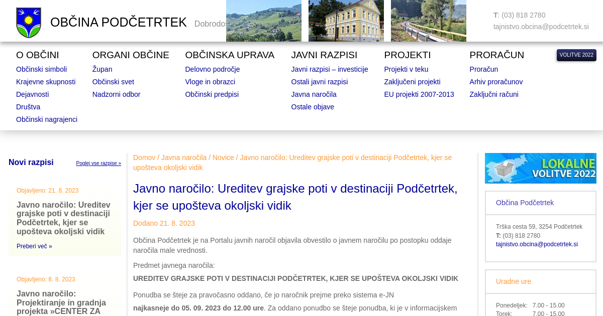 Javno naročilo: Ureditev grajske poti v destinaciji Podčetrtek, kjer se upošteva okoljski vidik