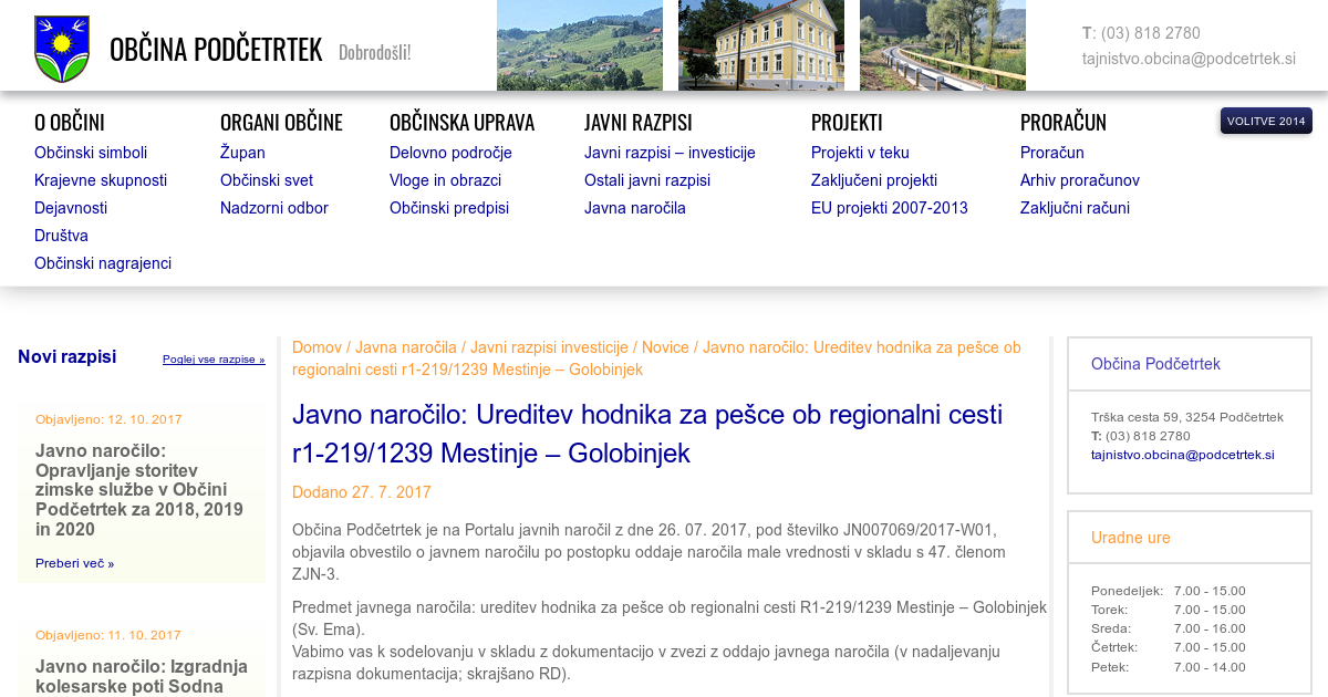 Javno naročilo: Ureditev hodnika za pešce ob regionalni cesti r1-219/1239 Mestinje – Golobinjek