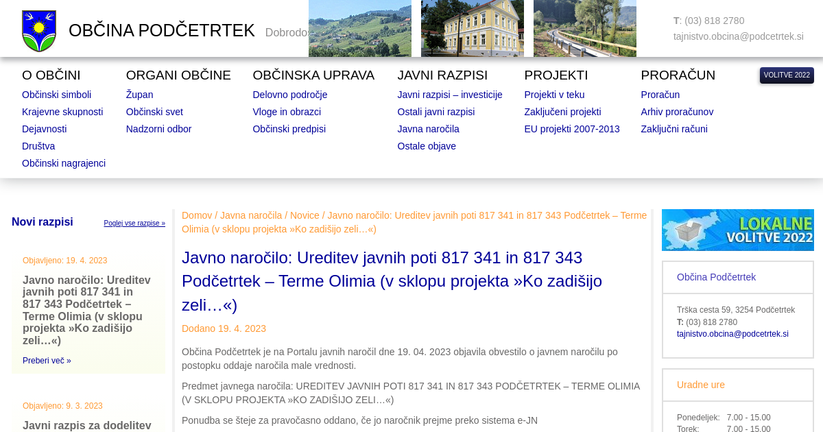 Javno naročilo: Ureditev javnih poti 817 341 in 817 343 Podčetrtek – Terme Olimia (v sklopu projekta »Ko zadišijo zeli…«)
