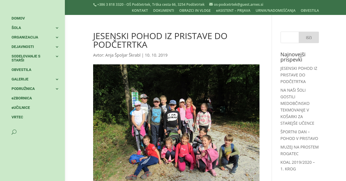 Učenci in učitelji od 1. do 4. razreda POŠ Pristava pri Mestinju, smo preživeli čudovit dan na pohodu. Sonce nas je grelo in veselo smo korakali proti Podčetrtku. Na pol poti smo se srečali z učenci in učitelji iz Podčetrtka. Skupaj smo malicali, se malo poigrali in svojo pot nadaljevali mimo Term Olimia, šli skozi gozd in na koncu prispeli do OŠ Podčetrtek. Tam smo preizkusili nova igrala in fitnes na prostem ter igrali nogomet.