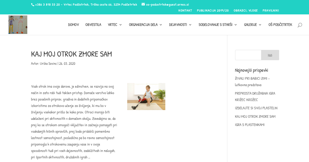 Vsak otrok ima svoje darove, je edinstven, se razvija na svoj način in zato rabi tudi takšen pristop. Domače varstvo lahko brez posebnih priprav, gradiva in dodatnih pripomočkov izkoristimo za otrokovo učenje za življenje, ki mu bo v življenju vsekakor prišlo še kako prav. Otroci morajo biti udeleženi pri aktivnostih v domačem okolju. Zavedajmo se, da prej ko se otrokom omogoči vključitev in začnejo pomagati pri vsakdanjih hišnih opravilih, prej bodo pridobili pomembno lastnost samostojnost, posledično pa bo ravno samostojnost pripomogla k otrokovemu zaupanju vase in v svoje sposobnosti tudi pri vseh dejavnostih, zadolžitvah in nalogah, pri športnih aktivnostih, družabnih igrah …
