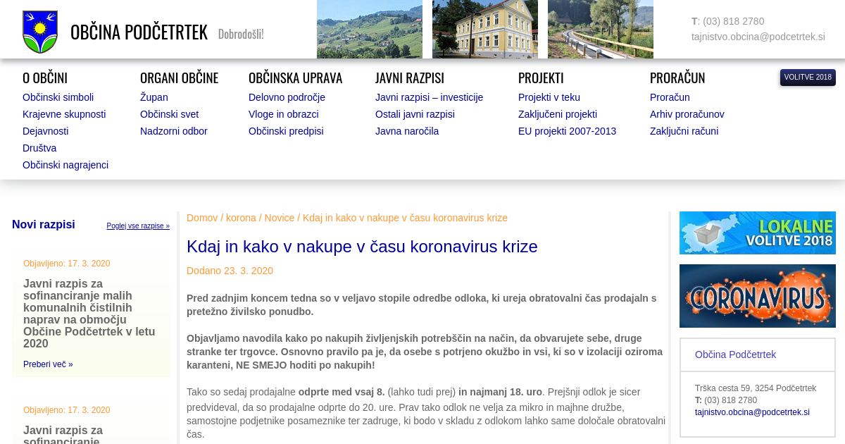 Pred zadnjim koncem tedna so v veljavo stopile odredbe odloka, ki ureja obratovalni čas prodajaln s pretežno živilsko ponudbo. Objavljamo navodila kako po nakupih življenjskih potrebščin na način, da obvarujete sebe, druge stranke ter trgovce. Osnovno pravilo pa je, da osebe s potrjeno okužbo in vsi, ki so v izolaciji oziroma karanteni, NE SMEJO hoditi