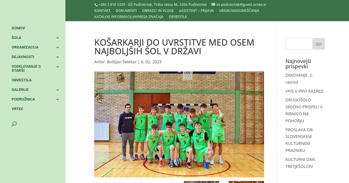 Naša šola je bila gostiteljica enega izmed osmih državnih polfinalnih turnirjev v košarki za starejše učence. Na tekmovanju so poleg naših šolarjev nastopili še učenci OŠ Bojana Ilicha iz Maribora in učenci II. OŠ Murska Sobota. V naslednji krog tekmovanja je tokrat vodilo samo prvo mesto. Na uvodni tekmi dne so naši fantje prikazali svojo najboljšo letošnjo predstavo s 76:36 ugnali vrstnike iz OŠ Bojana Ilicha. Naša ekipa je bila zanesljiva tudi v svojem drugem dvoboju, kjer so fantje premagali košarkarje II. OŠ Murska Sobota z 59:30 in se s tem se uvrstili na finalni turnir vzhodne regije. Tam bo ekipa iskala pot do zaključnega turnirja najboljših štirih šol v državi. Čestitke!