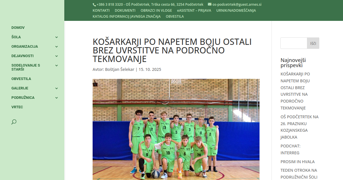 KOŠARKARJI PO NAPETEM BOJU OSTALI BREZ UVRSTITVE NA PODROČNO TEKMOVANJE