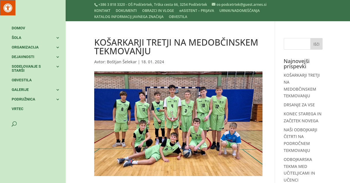 Letošnje medobčinsko tekmovanje v košarki za mlajše učence smo gostili na naši šoli. Prijavile so se štiri ekipe, prvi dve mesti pa sta vodili na področno tekmovanje. Naši fantje so v prvi tekmi morali priznati premoč šolarjem I. OŠ Rogaška Slatina (20:32). Tudi v drugem srečanju, ki je odločal o napredovanju na področno tekmovanje so naši igralci končali s porazom, saj so bili z 11:33 od njih boljši učenci II. OŠ Rogaška Slatina. Na področno tekmovanje sta se tako s po dvema zmagama uvrstili šoli iz Rogaške Slatine, tretji so bili naši košarkarji, četrti pa učenci OŠ Šmarje pri Jelšah.