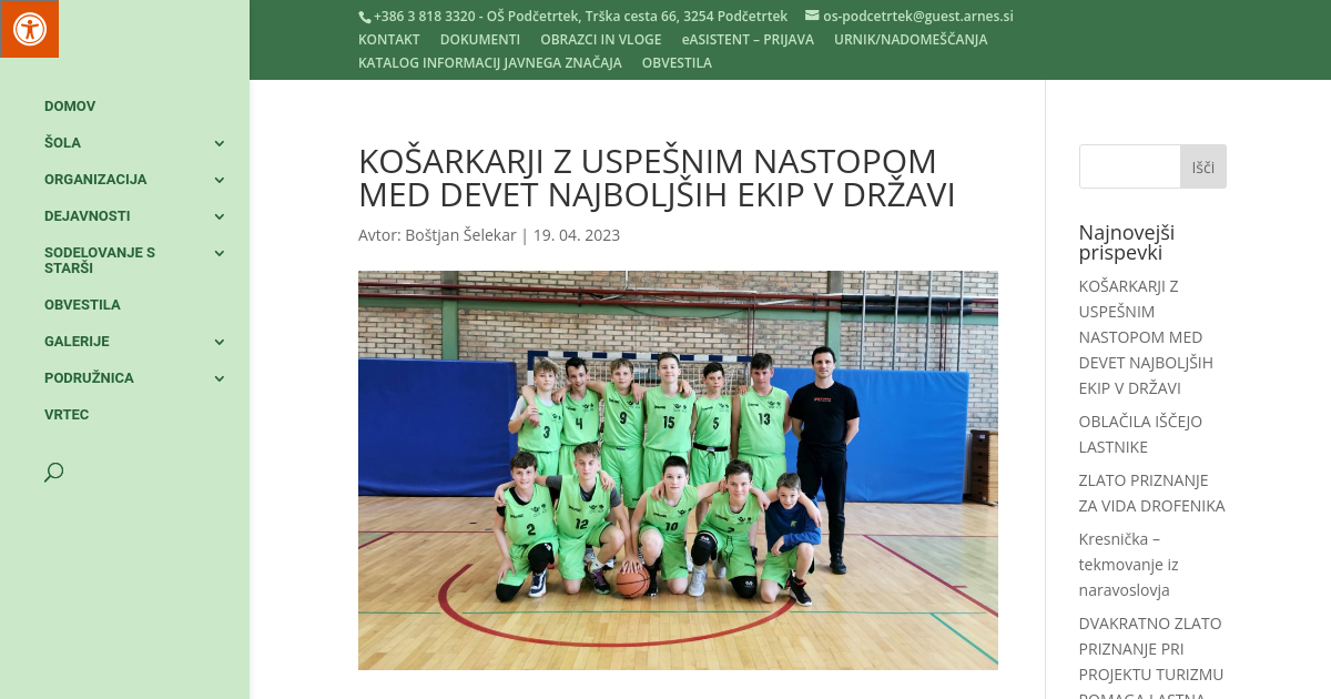 Po uspešnih nastopih na medobčinskih in področnih turnirjih je naše mlajše učence čakal še domač četrtfinalni turnir državnega tekmovanja v košarki. Poleg naših šolarjev so na tekmovanju nastopili še učenci OŠ Domžale in OŠ Brezovica pri Ljubljani. Naši fantje so pokazali, da sodijo med najboljše ekipe v tej starostni konkurenci ter se z zanesljivima zmagama proti Domžalčanom (48:21) in Brezovici (70:40) uvrstili v polfinale tekmovanja Košarkarski Superšolar, kjer bo nastopilo devet ekip.