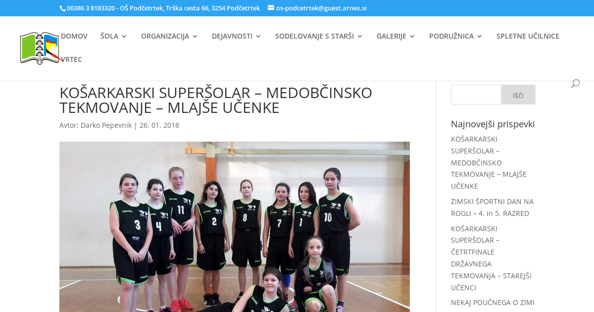 Tokratni turnir je potekal na OŠ Šmarje pri Jelšah. Poleg domače osnovne šole so na tekmovanju nastopile I. in II. OŠ Rogaška Slatina in OŠ Podčetrtek. Naša dekleta so v prvi tekmi premagala I. OŠ Rogaška slatina s 45:13, v drugo pa morala priznati premoč OŠ Šmarje pri Jelšah s 28:10 in osvojile končno tretje mesto.