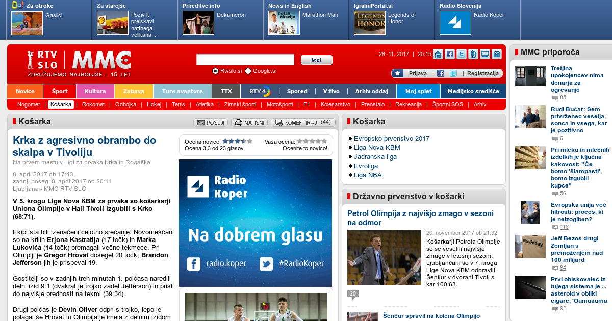 V 5. krogu Lige Nova KBM za prvaka so košarkarji Uniona Olimpije v Hali Tivoli izgubili s Krko ...