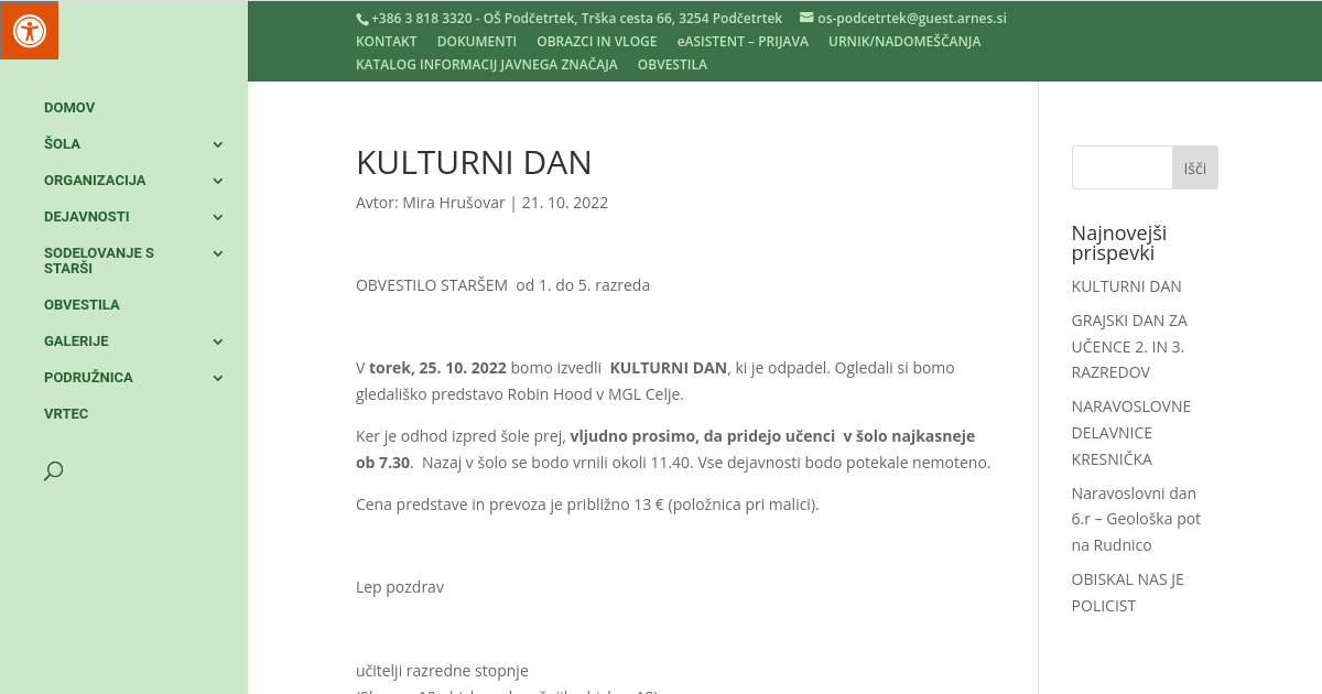OBVESTILO STARŠEM od 1. do 5. razreda