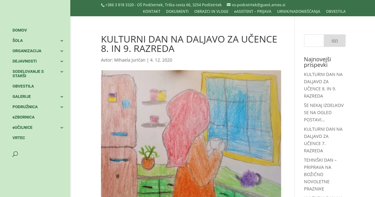 V četrtek, 3. 12. 2020, so imeli osmošolci kulturni dan, v petek, 4. 12. 2020, so se z istimi vsebinami srečali tudi devetošolci.