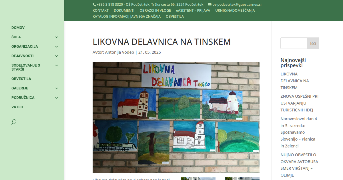 Likovna delavnica na Tinskem nas je tudi letos pričakala v soncu in naravi, ki sta učence kar vabila k likovnem ustvarjanju. Za začetek so se posladkali s palačinkami in toplim čajem. Nato so si ogledali atelje slikarja Janka Orača, ki jih je tudi vodil skozi njihovo potovanje slikanja. Učenci so v slikanju zelo uživali, se naučili nekaj novega, spletli nova prijateljstva in se povezali z naravo, ki je kar vabila s svojo barvitostjo. Upoštevali so nasvete slikarja in ustvarili prave umetnine na katere so bili ponosni. Sledil je zaključek z analizo dela in kosilom. Slike smo nato s ponosom razstavili v šoli Hvala Turističnemu društvu Tinsko za čudovito izkušnjo. Mnenja učenk vas bodo zagotovo prepričala.