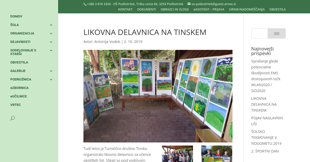 Tudi letos je Turistično društvo Tinsko organiziralo likovno delavnico za učence okoliških šol. Slikali so pod vodstvom slikarja Janka Orača. Najprej so si ogledali njegov atelje in razstavo slik. Slikar je učencem razložil potek dela, vsak si je izbral motiv iz okolja in narisal skico z ogljem. Njihovi začetki slikanja so bili skromni in boječi, sploh pri mešanju barv, a na koncu je nastalo veliko lepih del.