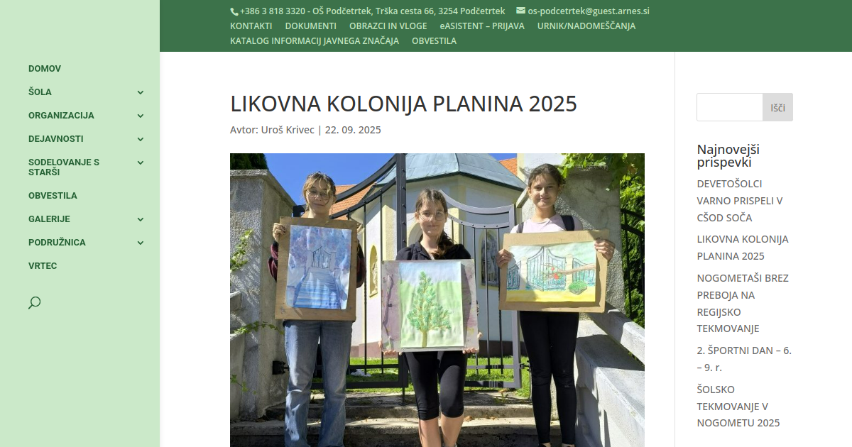V soboto 20. 9. 2025 smo se s tremi dekleti udeležili 19. likovne kolonije »Planina 2025«. Na ustvarjalnem dogodku je bilo večino šol z kozjanskega in Obsotelja. Dekleta so likovno ustvarjala v starem trškem jedru in pod gradom, imeli smo prečudovit sončen dan. Ustvarjalni dopoldan je poživil otroški smeh in druženje vrstnikov. Nastala so čudovita likovna dela, ki si jih lahko ogledate v galeriji.