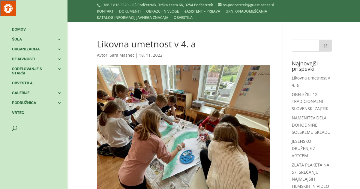 Po navdihu svetovno znane umetnice Colette Miller, ki je projekt ustvarjanja angelskih kril pričela leta 2012 v Los Angelesu in ga nadaljevala po vsem svetu, smo tudi v 4. a po skupinah ustvarjali pri urah likovne umetnosti. Krila so postala prava atrakcija, zato se ob njih slika ogromno ljudi. Tudi z učenci 4. a smo krila, ki so jih učenci ustvarili, pritrdili na hodniku šole ter se ob njih fotografirali.