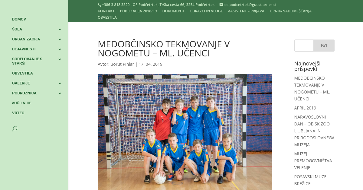 V torek 16. aprila smo se udeležili medobčinskega tekmovanja v nogometu za mlajše učence, ki ga je gostila II. OŠ Rogaška Slatina. V skupinskem delu je naša ekipa izgubila z vrstniki iz OŠ Šmarje s 1:3 in tako v polfinalu igrala z zmagovalci druge skupine II. OŠ Rogaška Slatina, ki je bila boljša s 3:0. Naša ekipa je tako osvojila četrto mesto in zaključila z letošnjim tekmovanjem.