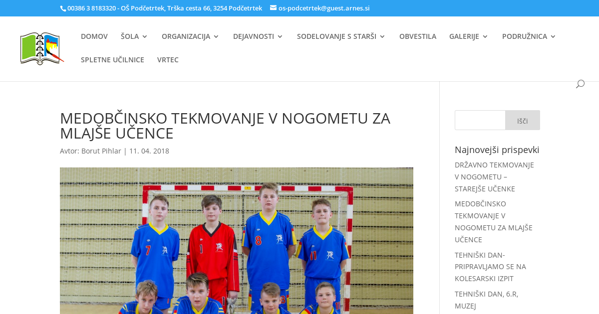 V torek 10. aprila smo se udeležili medobčinskega tekmovanja v nogometu za mlajše učence, ki ga je gostila OŠ Šmarje pri Jelšah. Naša ekipa je po nekoliko slabšem začetku, izgubila prvo tekmo proti vrstnikom iz OŠ Rogatec s 3:1, v drugi tekmi pa proti domačinom OŠ Šmarje pri Jelšah igrala neodločeno 1:1 in se tako ni uspela uvrstiti v nadaljnje tekmovanje.