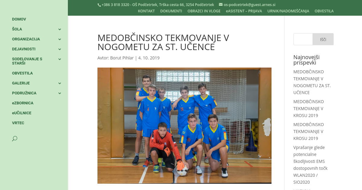 V ponedeljek 23. 9. 2019 je OŠ Šmarje pri Jelšah gostila finalni turnir v nogometu za st. učence. V prvi tekmi so od naše ekipe bili boljši vrstniki I. OŠ Rogaška Slatina in zmagali s 5:0, tudi v drugi, sicer bolj izenačeni tekmi, so morali naši igralci priznati premoč ekipi iz OŠ Rogatec, ki so zmagali z rezultatom 3:1.