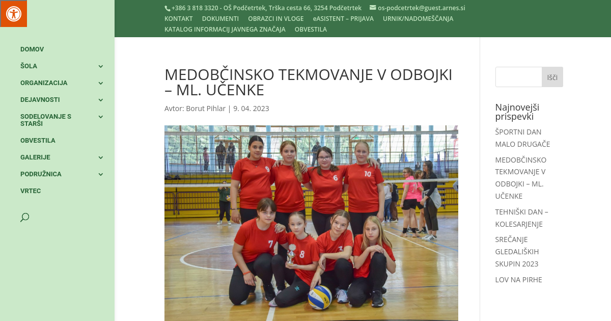 Rogaška Slatina; 7.4.2023 Na I. OŠ Rogaška Slatina, je potekalo še letošnje zadnje tekmovanje v odbojki. Zaključile so ga mlajše učenke. Na zelo izenačenem turnirju so naše učenke osvojile 4. mesto. Za boljši rezultat je bilo preveč napak v zaključkih posameznih tekem. So pa učenke spoznale, da je za uspeh potrebno vložiti več truda in resnosti v pripravah na tekmovanje. Sodelovale so: Lana Korošec, Lucija Brezovec, Zala Čakš, Petra Mrkša Lea Školnik Pasarič, Maja Pavčnik, Nika Šestanj in Lana Hohnjec