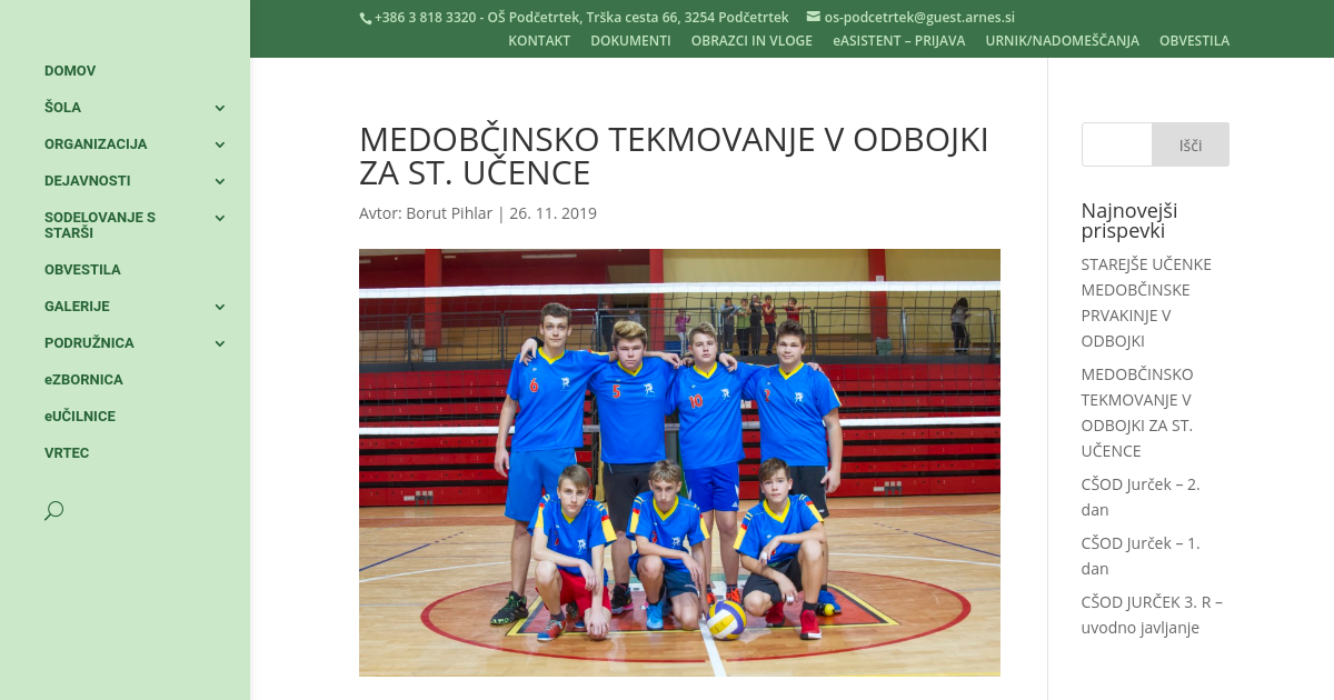 V ponedeljek 25. 11.2019 je OŠ Rogatec gostila medobčinsko tekmovanje v odbojki za starejše učence. V zelo izenačeni konkurenci so vse ekipe prikazale zelo dobro igro. Našim odbojkarjem je zmanjkalo tudi malo športne sreče in so na koncu zasedli četrto mesto.