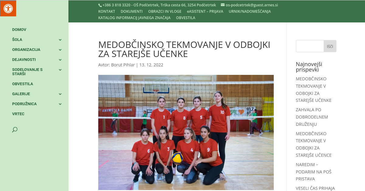 Rogatec; 13.12.2022 Tako kot pri fantih, se je tudi odbojkarskega turnirja za starejše učenke, udeležilo šest ekip. Razdeljene so bile v dve skupini. Naše učenke so se v svoji skupini najprej pomerile z domačinkami in ob začetni tremi morale priznati premoč. V drugi tekmi so igralke OŠ Kozje premagale Igralke iz Rogatca. Ob morebitni zmagi proti igralkam iz Kozjega bi se naše igralke lahko uvrstile celo v finale, a je nekaj malega zmanjkalo. Je bila po to dobra izkušnja za naslednje leto, saj so večino naše ekipe sestavljale osmošolke.