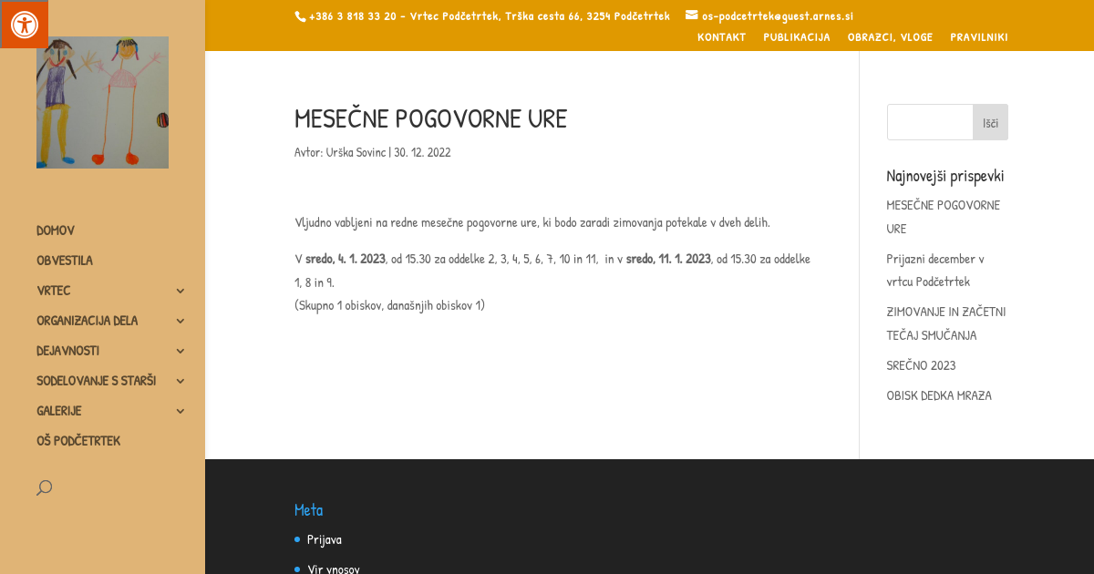 Vljudno vabljeni na redne mesečne pogovorne ure, ki bodo zaradi zimovanja potekale v dveh delih.
