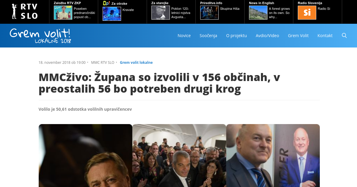 MMCživo: Župana so izvolili v 156 občinah, v preostalih 56 bo potreben drugi krog