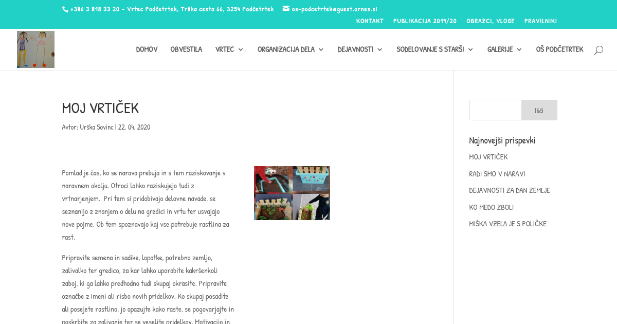 Pomlad je čas, ko se narava prebuja in s tem raziskovanje v naravnem okolju. Otroci lahko raziskujejo tudi z vrtnarjenjem. Pri tem si pridobivajo delovne navade, se seznanijo z znanjem o delu na gredici in vrtu ter usvajajo nove pojme. Ob tem spoznavajo kaj vse potrebuje rastlina za rast.