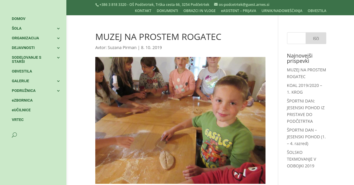 V torek, 8. 10. 2019 so imeli prvošolci in drugošolci POŠ Pristava pri Mestinju naravoslovni dan. Odpeljali se v Rogatec in dan preživeli v muzeju na prostem, ki ima zaradi izjemnih kulturnih, etnoloških, krajinskih in zgodovinskih lastnosti izjemen pomen za celotno Slovenijo in je bil leta 1999 razglašen za kulturni spomenik državnega pomena.