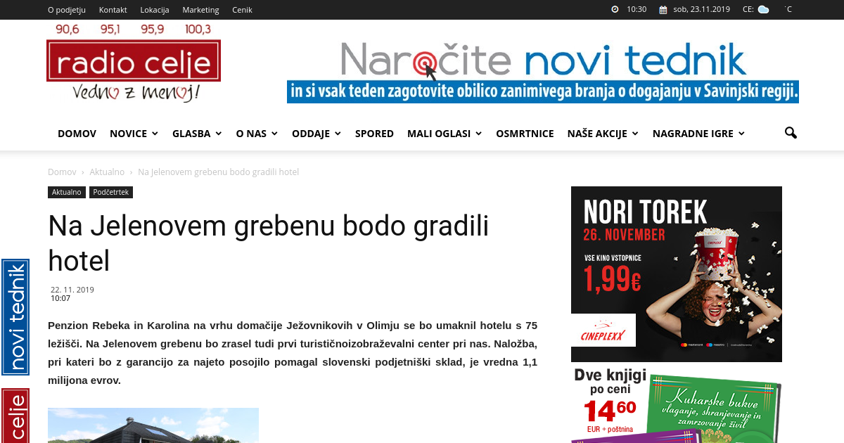 Penzion Rebeka in Karolina na vrhu domačije Ježovnikovih v Olimju se bo umaknil hotelu s 75 ležišči. Na Jelenovem grebenu bo zrasel tudi prvi turističnoizobraževalni center pri nas. Naložba, pri kateri bo z garancijo za najeto posojilo pomagal slovenski podjetniški sklad, je vredna 1,1 milijona evrov. Kot pravi lastnik Borut Ježovnik, takšnega modela v slovenskem