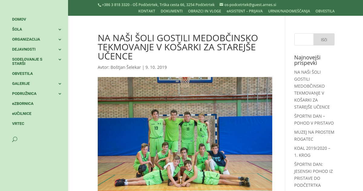 Turnirja za starejše učence so se poleg naše šole udeležili še šolarji iz OŠ Šmarje pri Jelšah in II. OŠ Rogaška Slatina. V prvi tekmi so našim fantom nasproti stali Šmarčani, ki so si v prvem delu igre priigrali prednost in jo nato zadržali vse do konca. Semafor je ob koncu kazal rezultat 33:44 za goste. V drugem srečanju so nato košarkarji II. OŠ Rogaška Slatina visoko premagali vrstnike iz Šmarja pri Jelšah (28:41), kar je pomenilo, da morajo naši fantje za napredovanje premagati Rogaško. Kljub dejstvu, da so naši učenci v drugo zaigrali bolje jim to žal ni uspelo, saj so bili nasprotniki na koncu boljši z 38:47. S tem je ekipa starejših učencev zaključila s tekmovanjem za letos, več pa letos rezultatsko pričakujemo od mlajših učencev, ki bodo z nastopi pričeli ob koncu koledarskega leta.