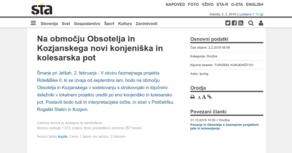 V okviru čezmejnega projekta Ride&Bike II, ki se izvaja od septembra lani, bodo na območju Obsotelja in Kozjanskega v sodelovanju s strokovnjaki in ključnimi deležniki v lokalnem projektu uredili po eno konjeniško in kolesarsko pot. Postavili bodo tudi tri interpretacijske točke, in sicer v Podčetrtku, Rogaški Slatini in Kozjem.