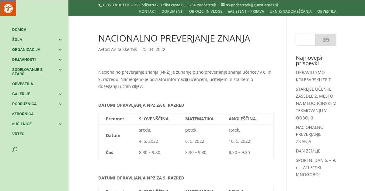 Nacionalno preverjanje znanja (NPZ) je zunanje pisno preverjanje znanja učencev v 6. in 9. razredu. Namenjeno je povratni informaciji učencem, učiteljem in staršem o doseganju učnih ciljev.