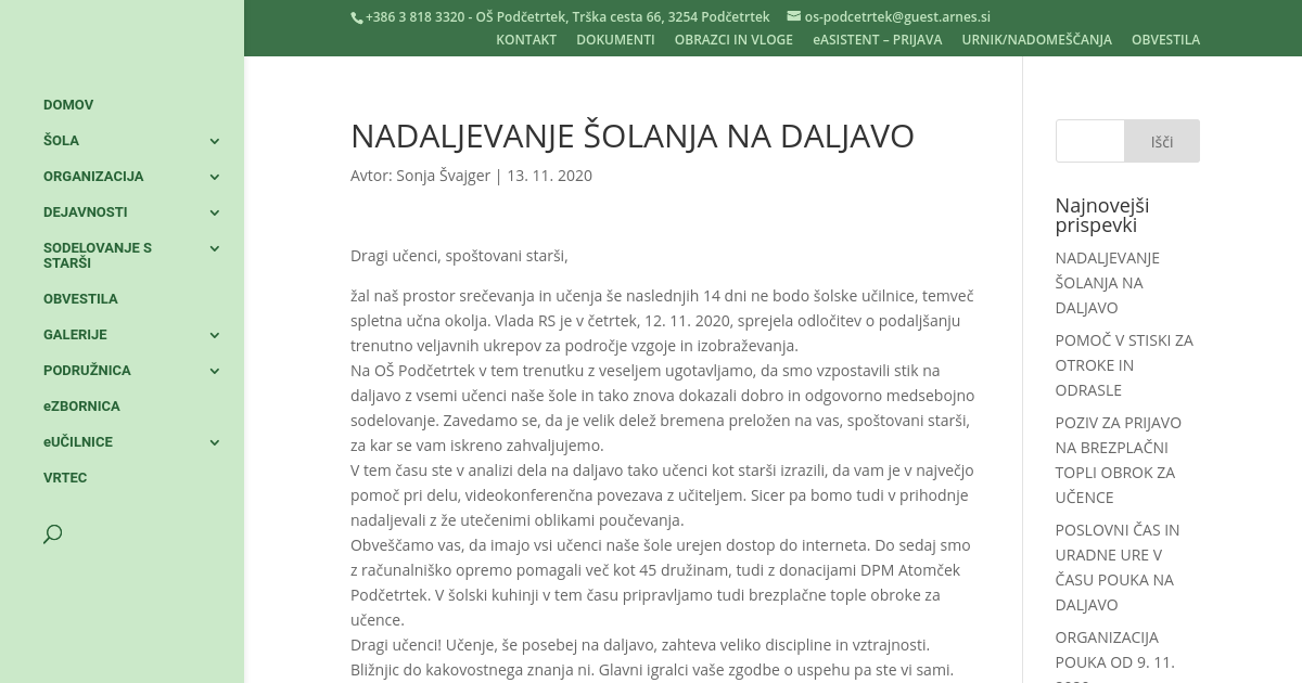 NADALJEVANJE ŠOLANJA NA DALJAVO