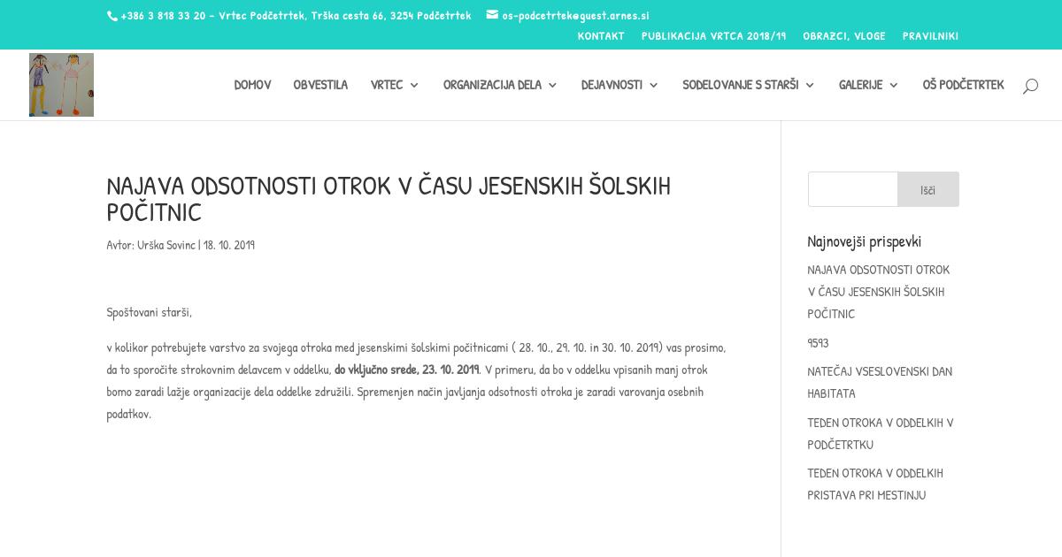 NAJAVA ODSOTNOSTI OTROK V ČASU JESENSKIH ŠOLSKIH POČITNIC