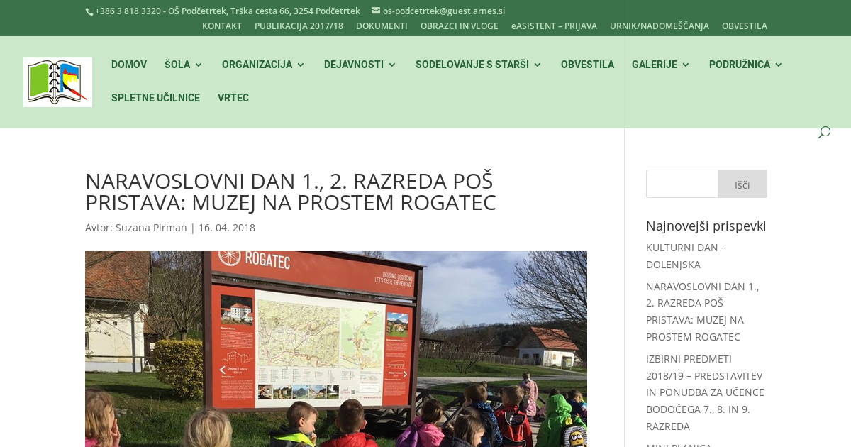 V ponedeljek, 9. 4. 2018 smo se prvošolci in drugošolci odpeljali v Rogatec. Dan smo preživeli v doslej največjem muzeju na prostem v Sloveniji, ki ima zaradi izjemnih kulturnih, etnoloških, krajinskih in zgodovinskih lastnosti izjemen pomen za celotno Slovenijo in je bil leta 1999 razglašen za kulturni spomenik državnega pomena.