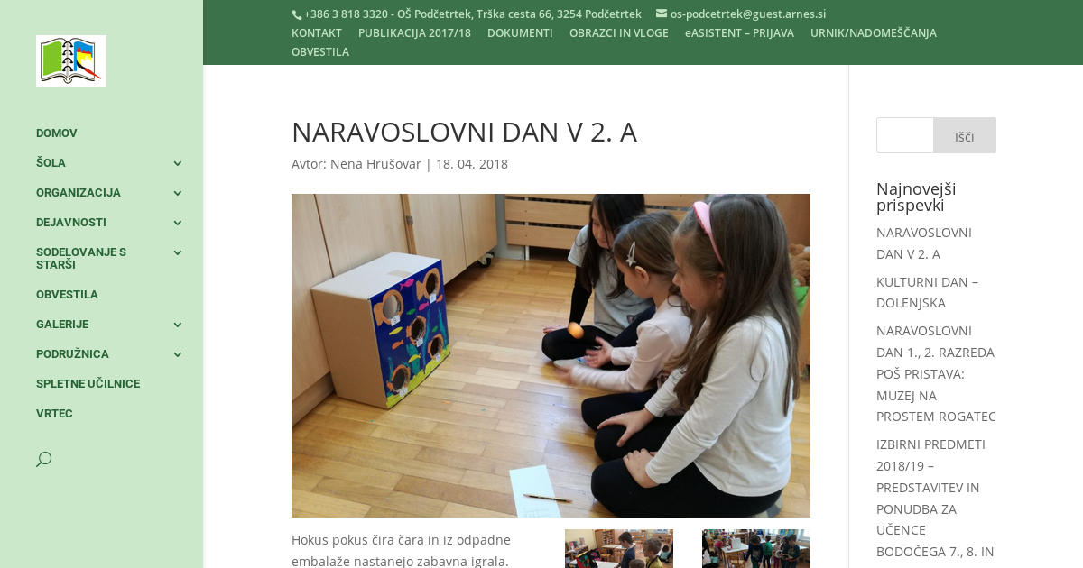 Hokus pokus čira čara in iz odpadne embalaže nastanejo zabavna igrala. Hkrati pa je ob igri nanje potrebna še natančnost, znanje seštevanja do 100 in kanček sreče. Drugošolci so se v petek 13. 4. 2018 predano lotili nalog na naravoslovnem dnevu. Iz škatel, kosov ivernih plošč, lončkov, papirnatih krožnikov, žice in zamaškov je ob koncu pouka vsem skupinam uspelo narediti svojstveno igro. Časa, predvsem pa volje je bilo dovolj, da so nove igre preizkusili. Ugotovili so še nekaj, da je prijetno že samo izdelovanje v skupini.