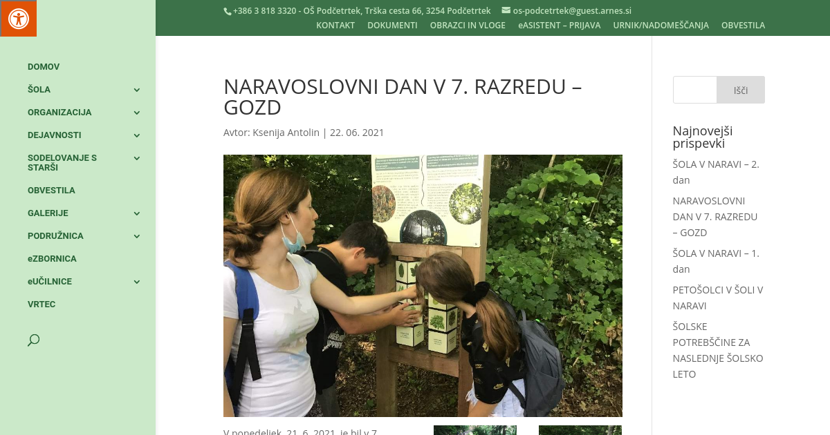 V ponedeljek, 21. 6. 2021, je bil v 7. razredu izveden naravoslovni dan na temo Gozd. Dan dejavnosti je potekal v Podsredi, kjer so se učenci pod okriljem strokovnih delavk Kozjanskega parka podali na gozdno učno pot, ki vodi do gradu Podsreda. Na poti so se učenci seznanili s številnimi vrstami rastlin in živali.