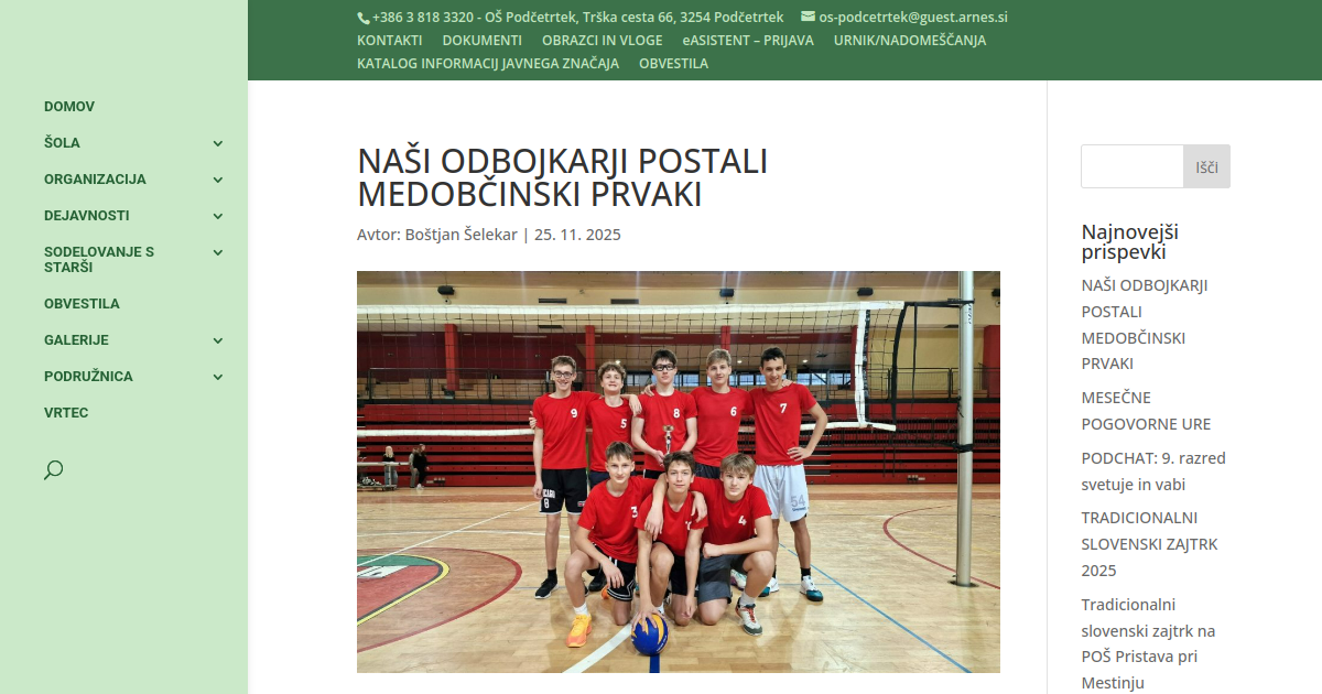 Letošnji medobčinski turnir v odbojki za starejše učence je potekal na OŠ Rogatec. Poleg šole gostiteljice so se tekmovanja udeležili še učenci OŠ Kozje, I. OŠ Rogaška Slatina ter naši šolarji. Turnir je minil v pravem športnem vzdušju, največ odbojkarskega znanja pa so prikazali prav naši igralci. Prepričljivo so dobili vse tri tekme z rezultatom 2:0 in se na koncu zasluženo veselili prvega mesta.