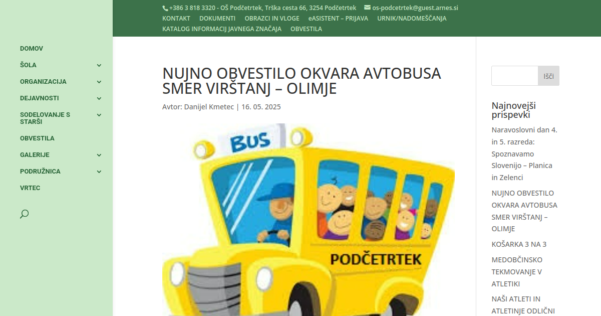 NUJNO OBVESTILO OKVARA AVTOBUSA SMER VIRŠTANJ – OLIMJE