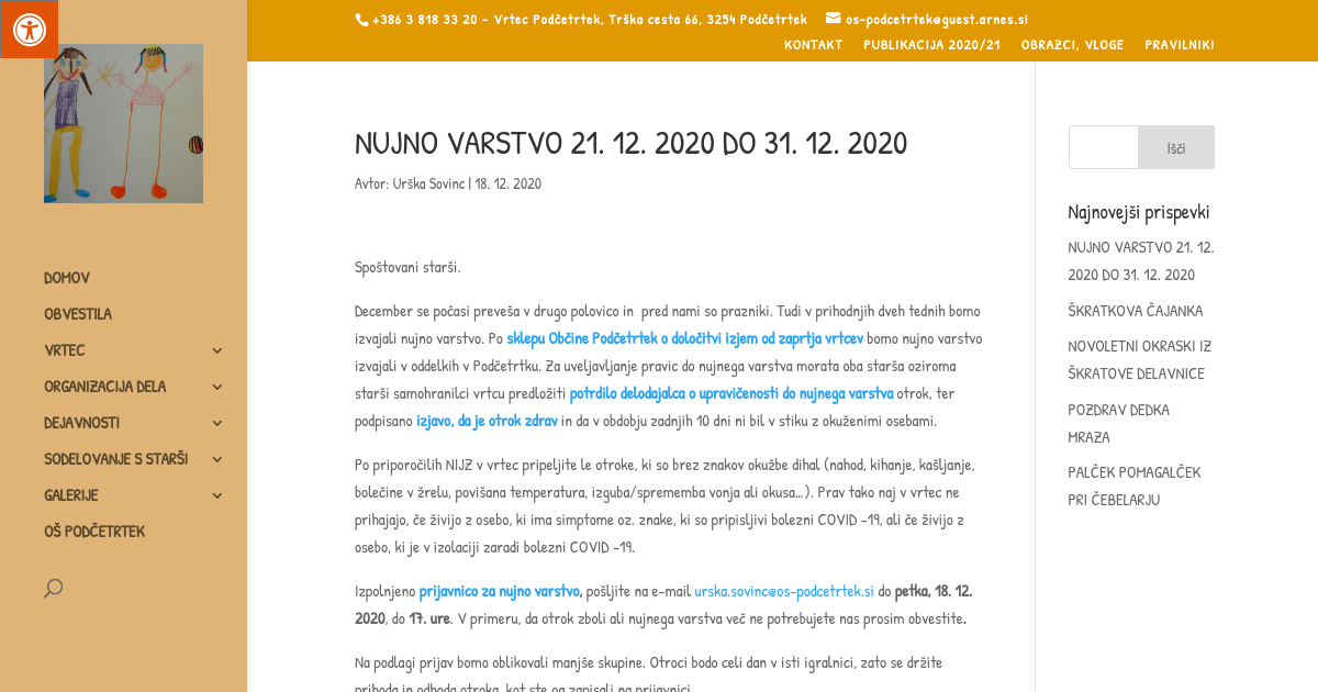 NUJNO VARSTVO 21. 12. 2020 DO 31. 12. 2020