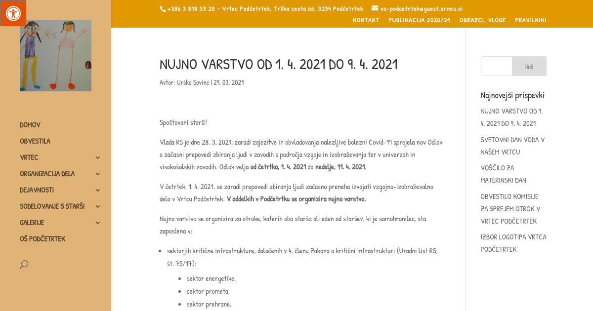 NUJNO VARSTVO OD 1. 4. 2021 DO 9. 4. 2021