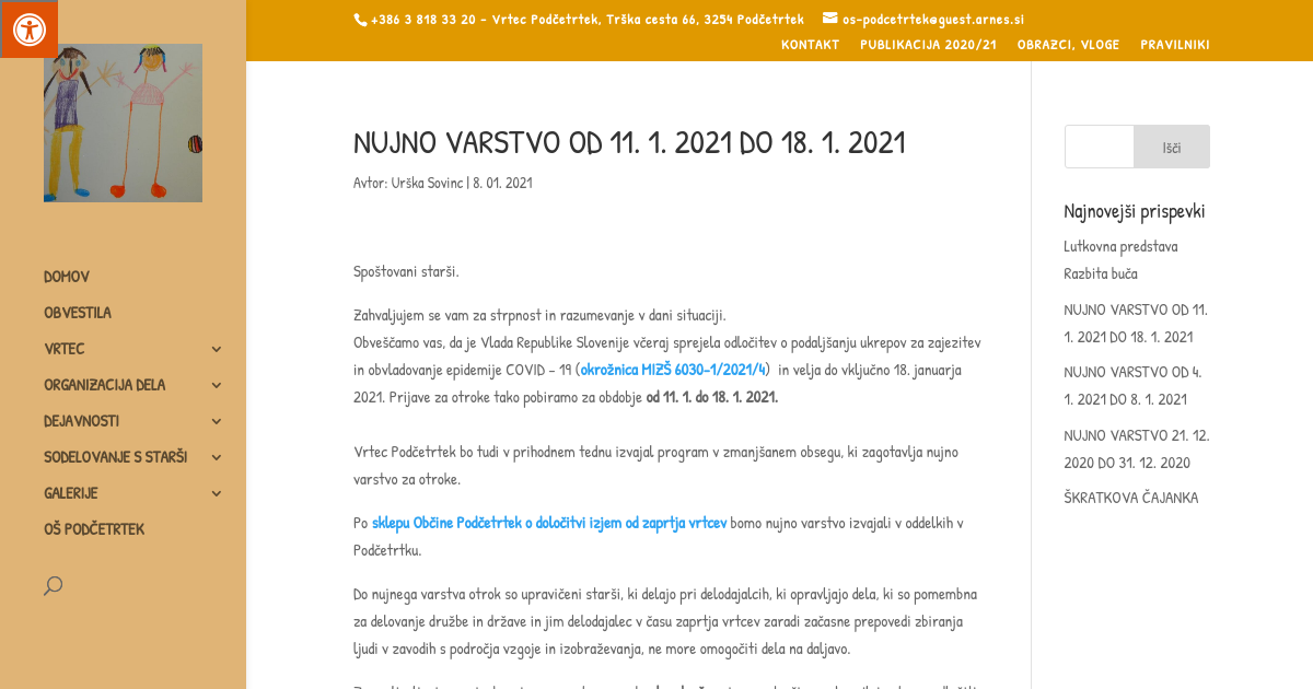 NUJNO VARSTVO OD 11. 1. 2021 DO 18. 1. 2021