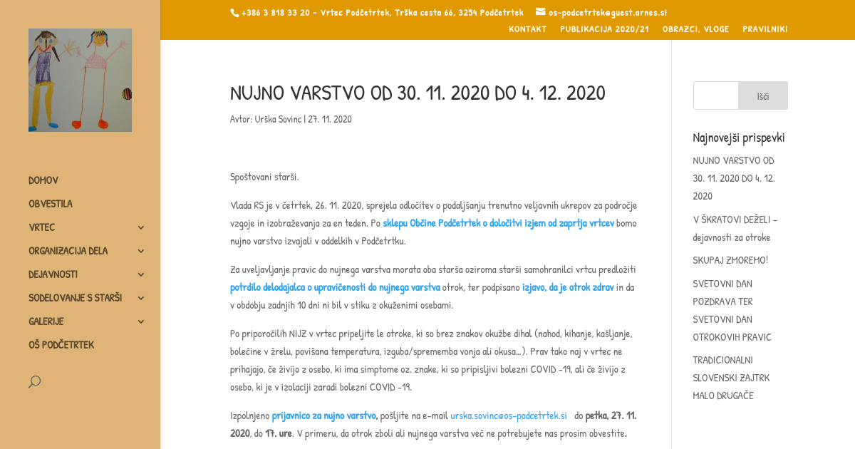 NUJNO VARSTVO OD 30. 11. 2020 DO 4. 12. 2020