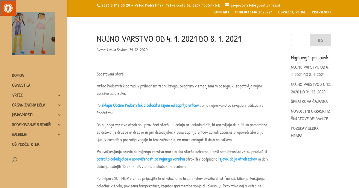 NUJNO VARSTVO OD 4. 1. 2021 DO 8. 1. 2021